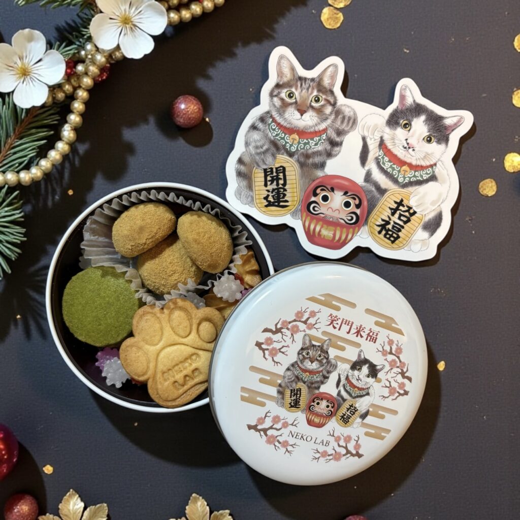NEKO LABさんから発売した招き猫限定クッキー缶デザインからアレンジしたお正月Ver.です!