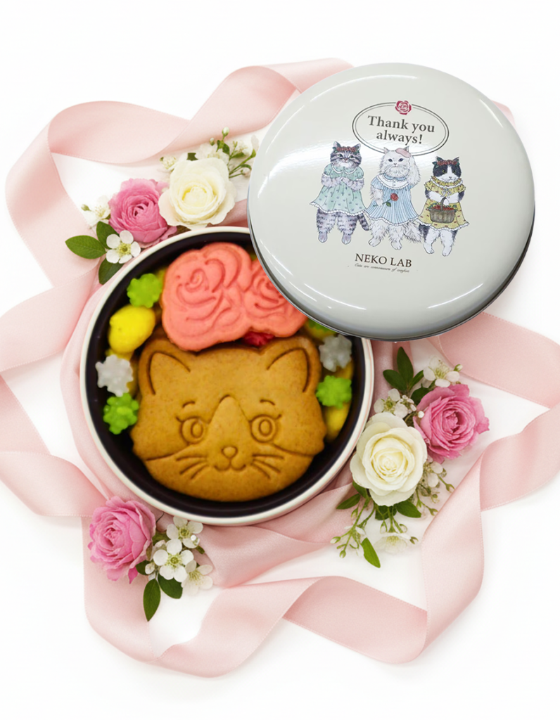 2023年NEKO LABクッキー缶で担当したイラストのアレンジデザインが、2026年03月15日からNEKO LAB公式オンラインショップにて【ありがとう缶】として発売されました!