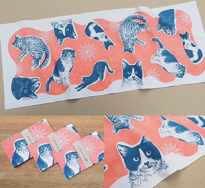 いしかわ生活工芸ミュージアムで12月11日より開催される「こっそり猫展」のフライヤーの猫イラストを使用した手ぬぐいがミュージアムショップで期間限定で販売中!