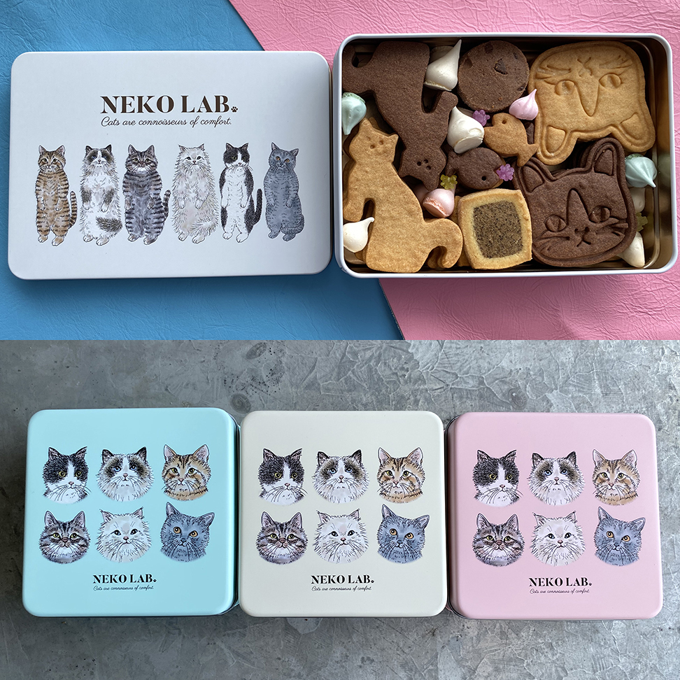 クッキー缶のパッケージの猫イラストを担当しました!